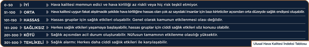 Hava kalitesi ölçümlerinde, “İyi Sınıf” değerleri,